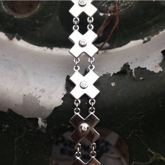 Realizada en oro de 18 quilates. Diamantes talla brillante. Elaboración artesanal y acabado a mano.