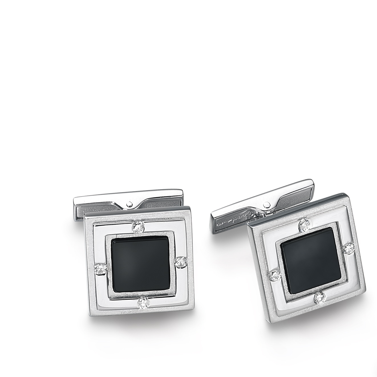 Realizados en oro de 18 quilates. Diamantes talla brillante. Esmalte vitrico color negro. Elaboración artesanal y acabado a mano.