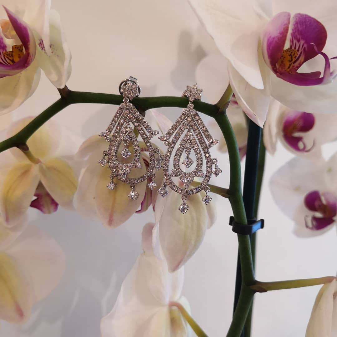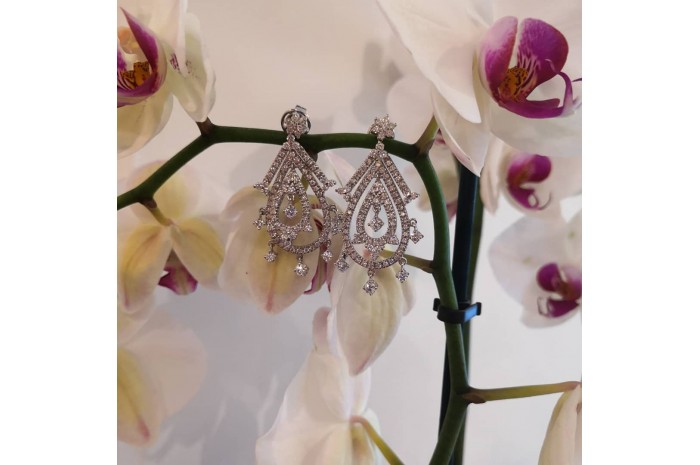 Realizados en oro de 18 quilates. Diamantes talla brillante (4.85 kts.). Elaboración artesanal y acabado a mano.