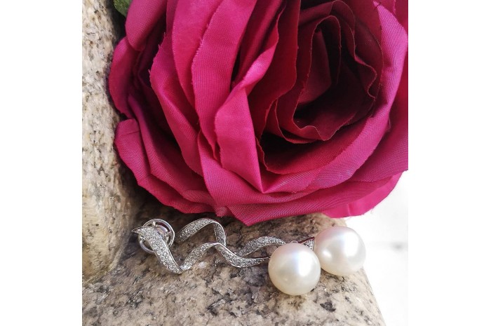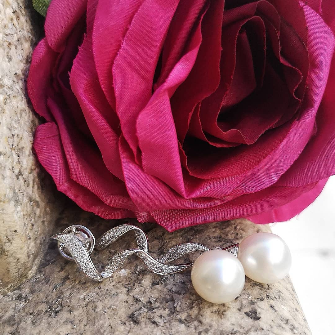 Realizados en oro de 18 quilates. Perlas australianas y diamantes talla brillante (0.41 kts.). Elaboración artesanal y acabado a mano.
