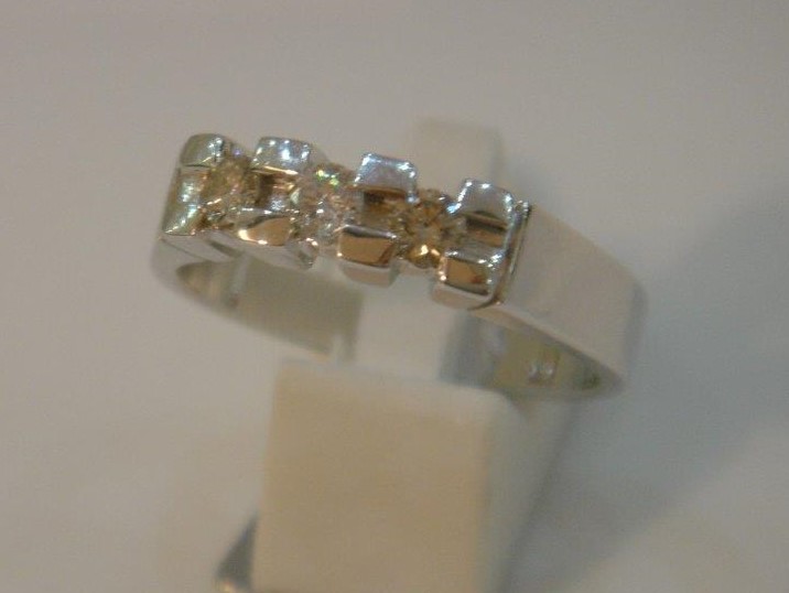 Realizada en oro de 18 quilates. Diamantes talla brillante. Elaboración artesanal y acabado a mano.