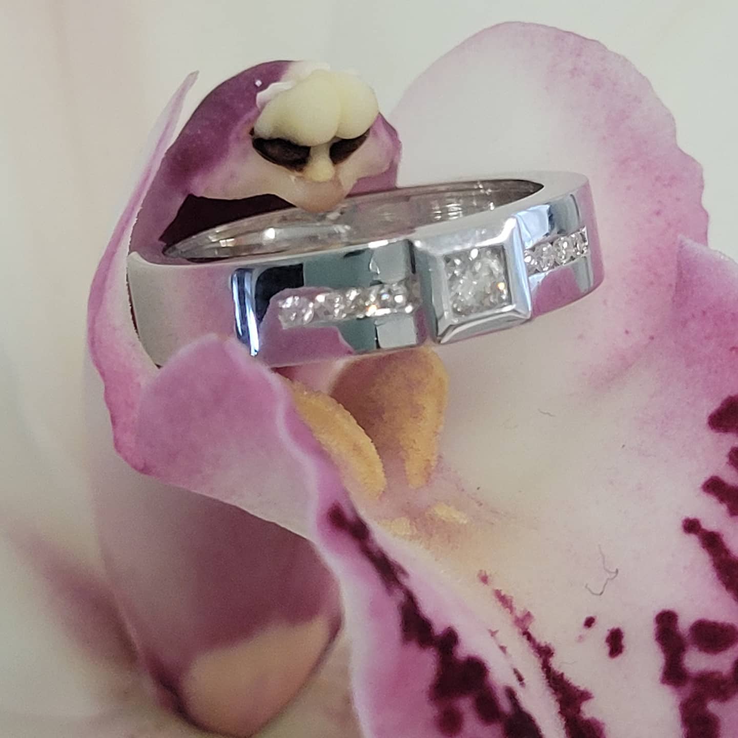 Realizada en oro de 18 quilates. Diamantes talla brillante. Elaboración artesanal y acabado a mano.