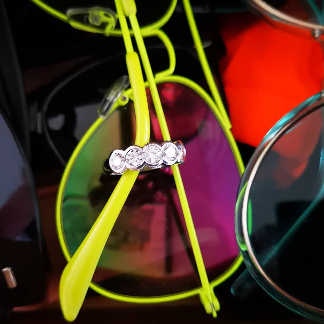 Realizada en platino. Con 5 diamantes talla brillante (1.25 kts.). Elaboración artesanal y acabado a mano.