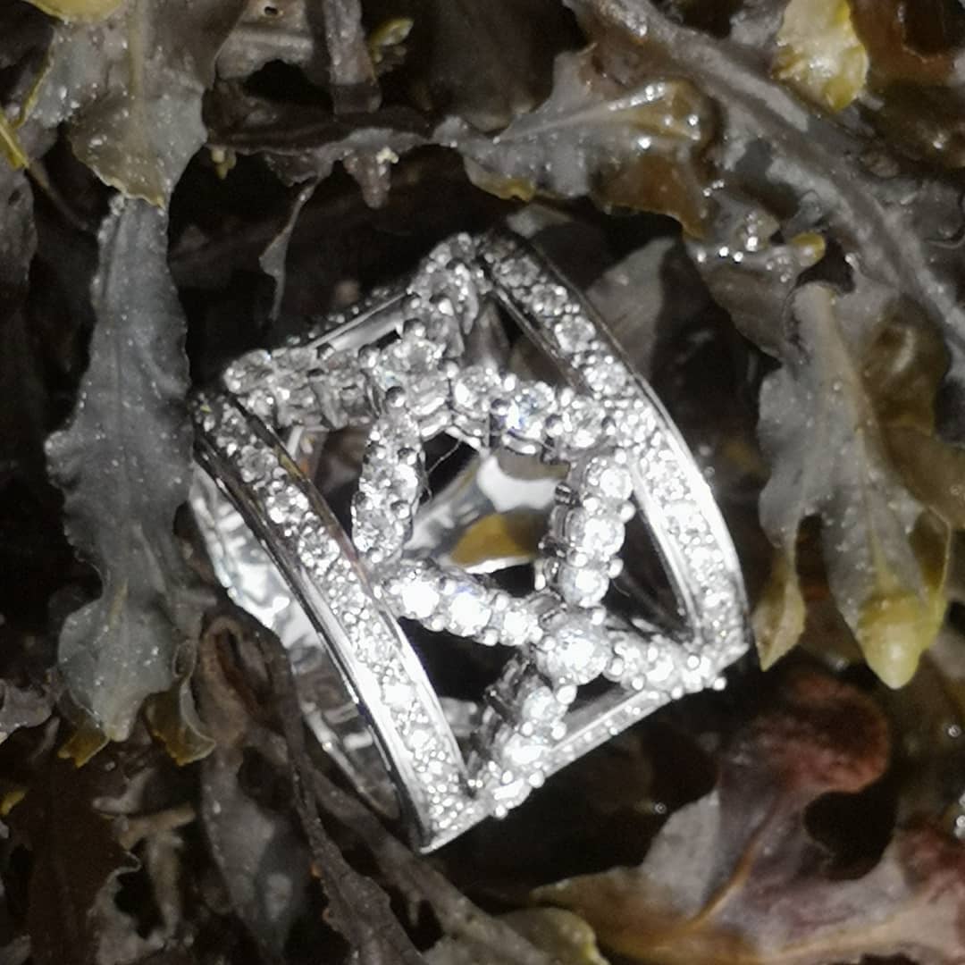 Realizada en oro de 18 quilates. Diamantes talla brillante (1.49 kts.). Elaboración artesanal y acabado a mano.