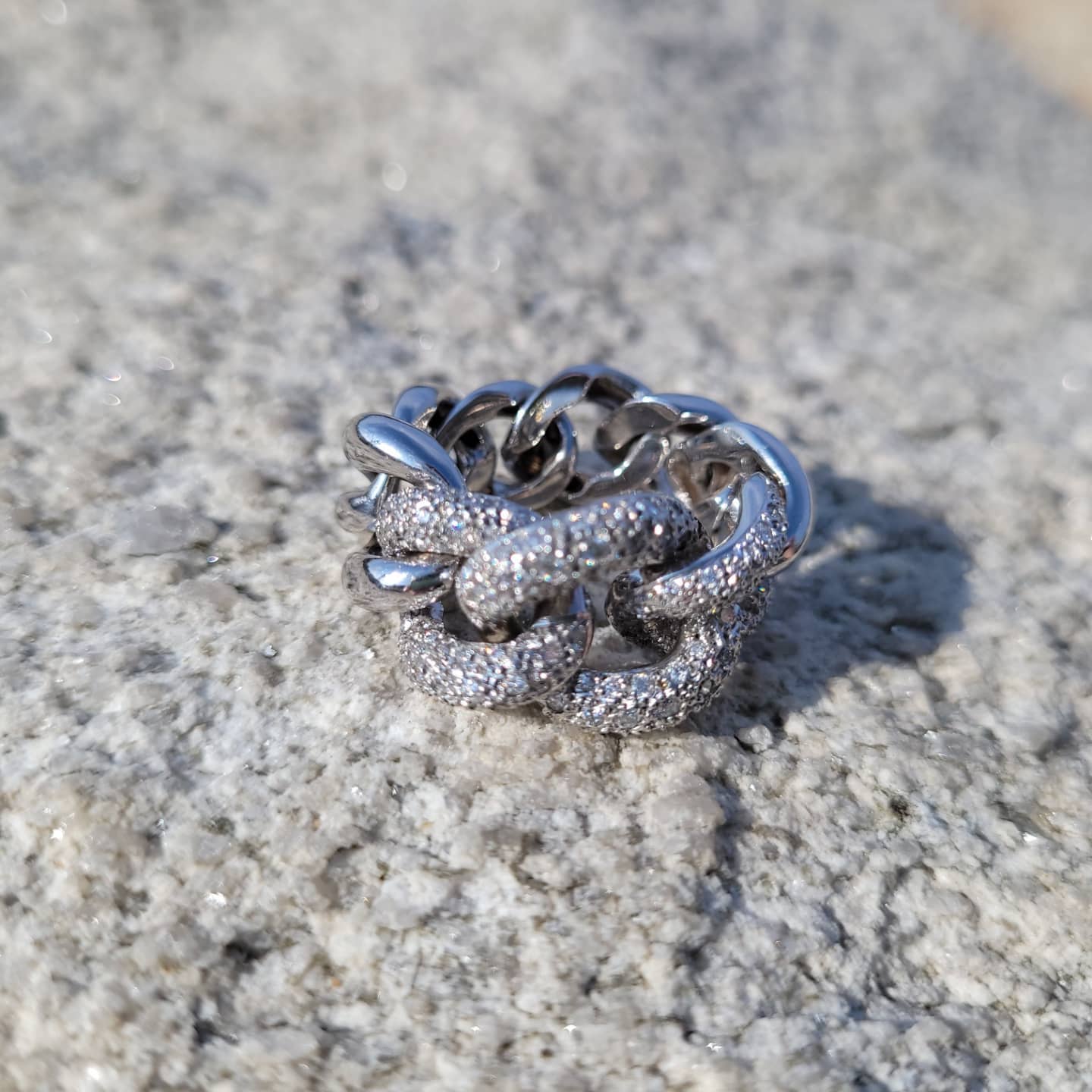 Realizada en oro de 18 quilates. Montura flexible, tipo cadena. Diamantes talla brillante (1.00 kts.). Elaboración artesanal y acabado a mano.